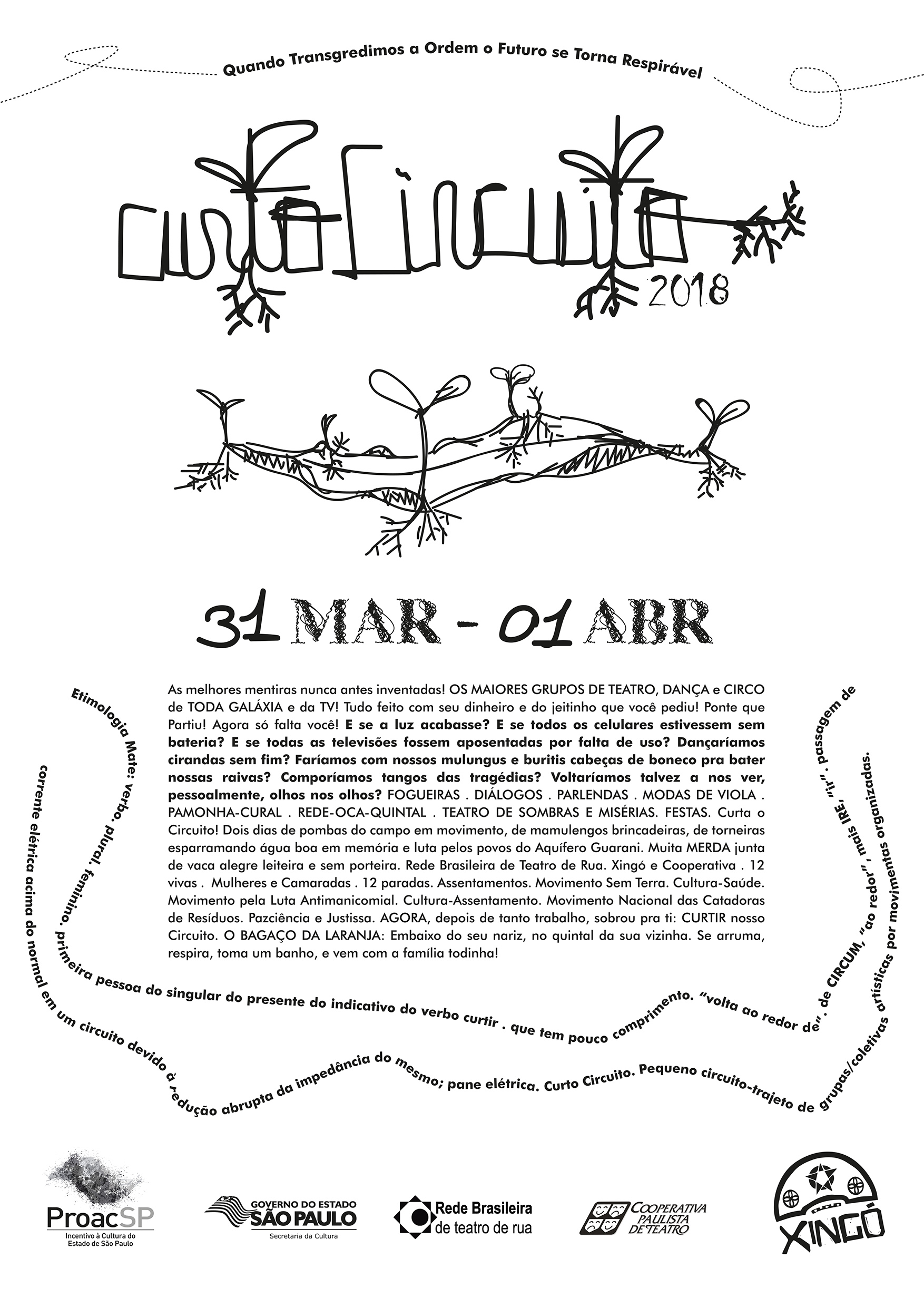 Criado pelo Grupo Xingó há mais de dez anos, o Festival Curto-Circuito teve quatro edições, e se configura como um movimento artístico que atravessa o estado de São Paulo, da capital ao extremo oeste, alcançando territórios rurais e urbanos, assentamentos, vilas e cidades. Mais do que uma mostra de espetáculos, o festival se afirma como espaço de encontro e mutirão entre artistas, grupos, movimentos sociais e comunidades, em diálogo vivo com os saberes e práticas que já habitam esses lugares.